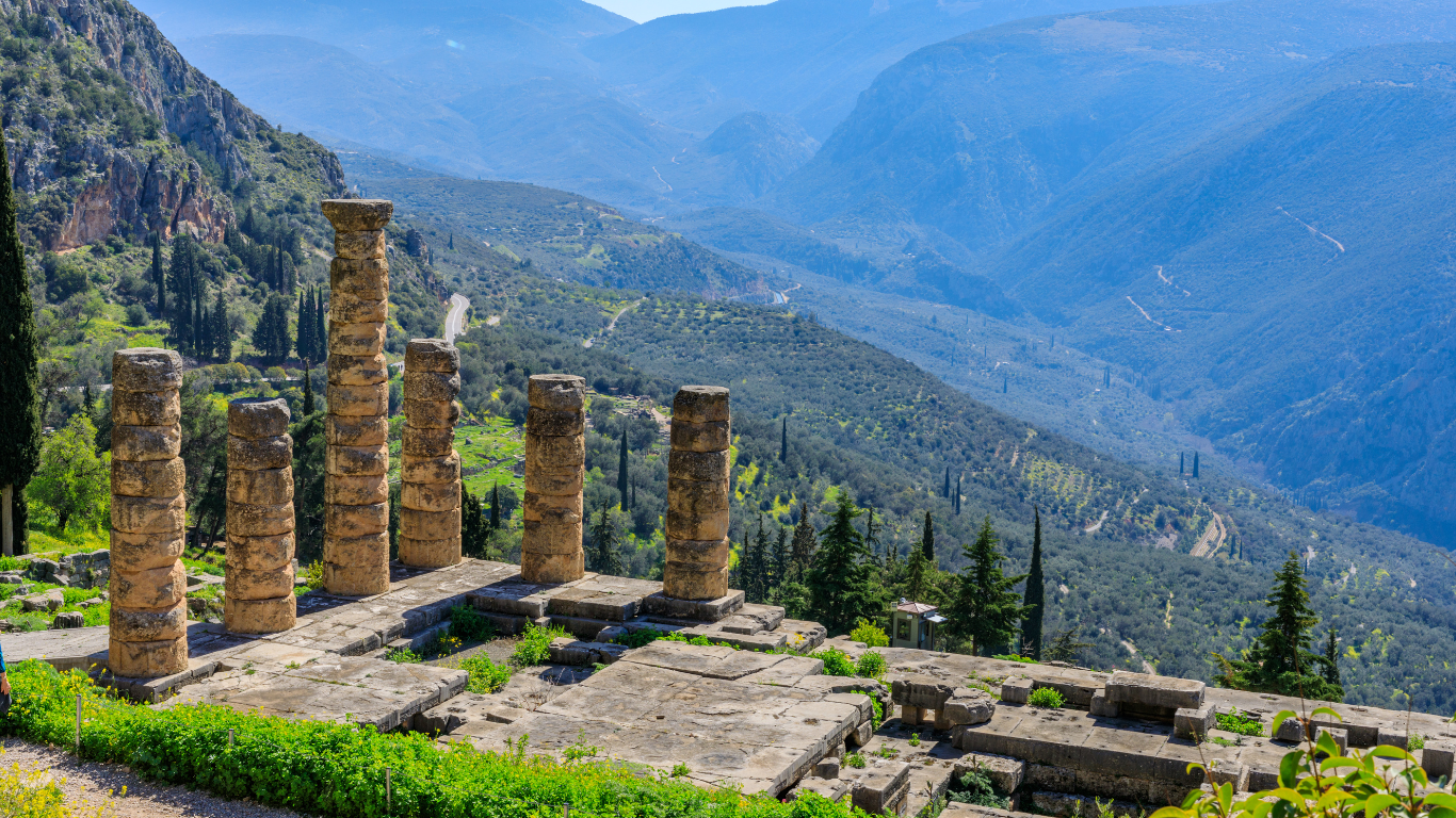 Delfi era consacrata ad Apollo, dio della luce, della profezia e dell’armonia, ma anche protettore delle arti, della musica, della poesia, della medicina e della conoscenza. Era considerato il dio dell’equilibrio e della misura, colui che guidava gli uomini verso la verità e la saggezza.